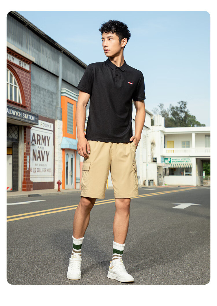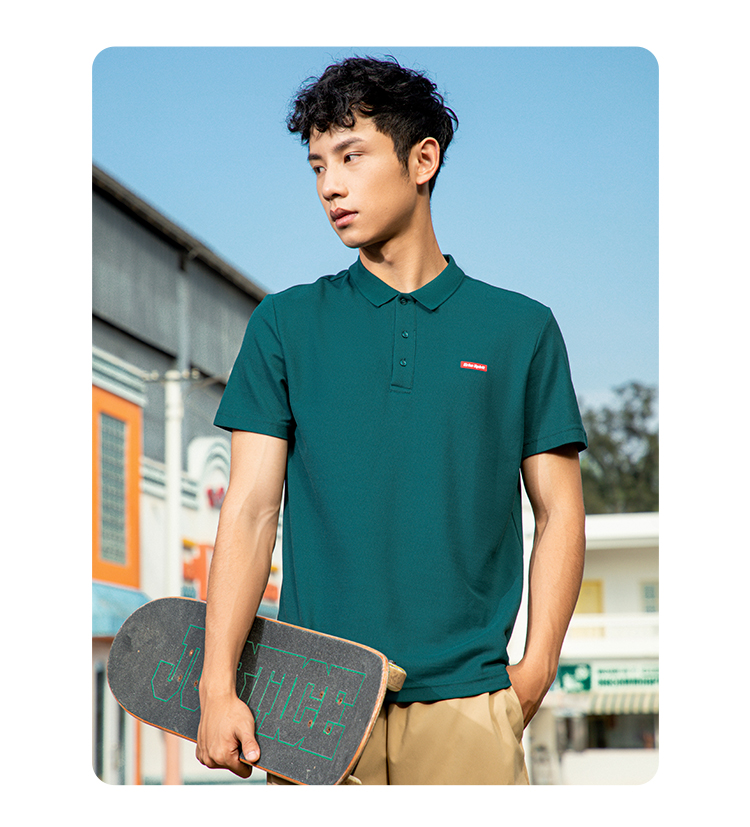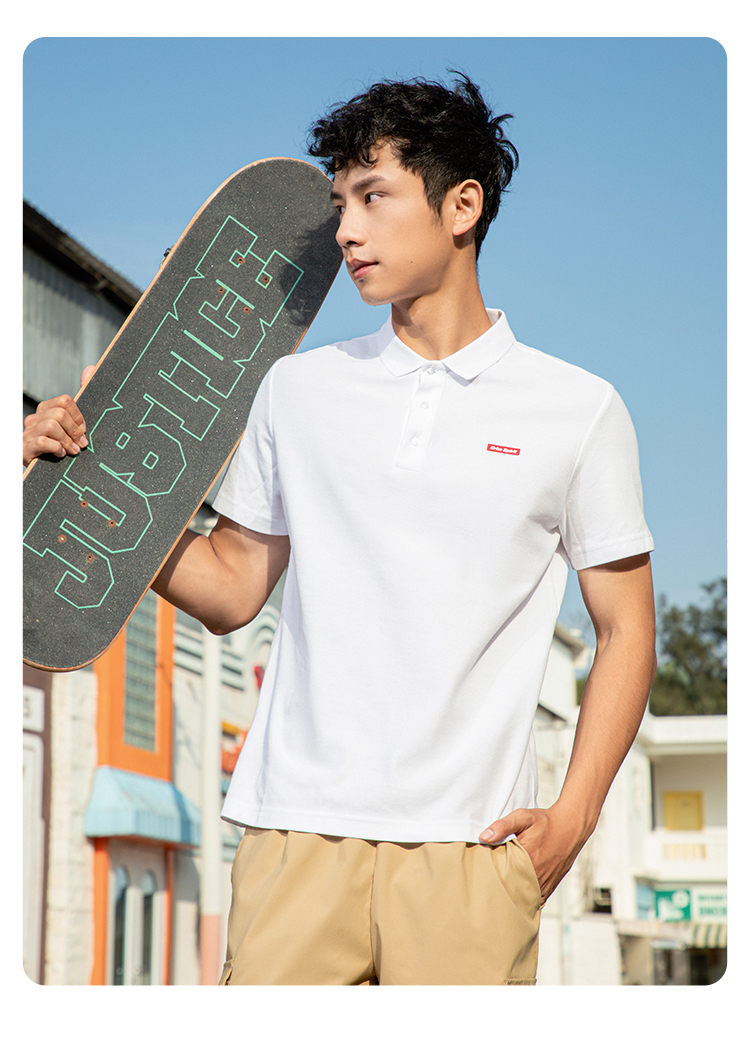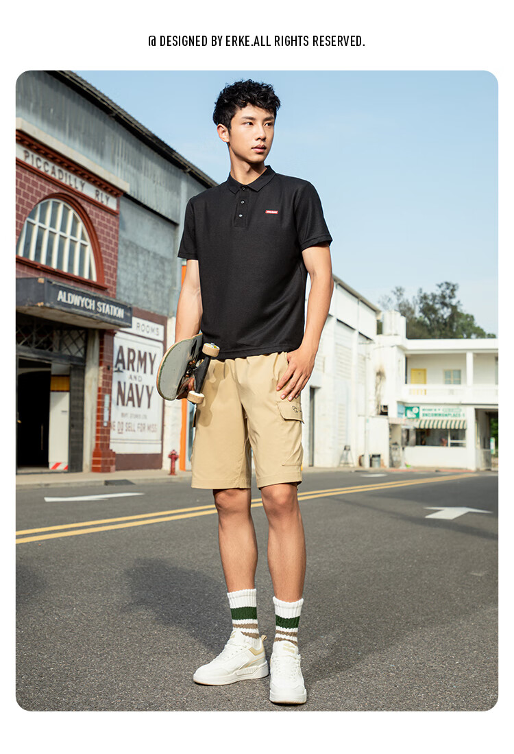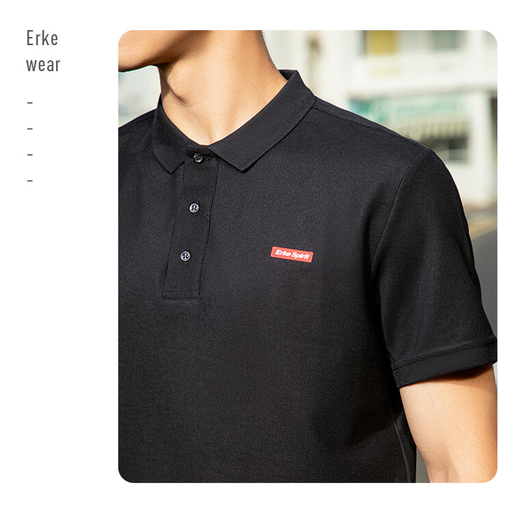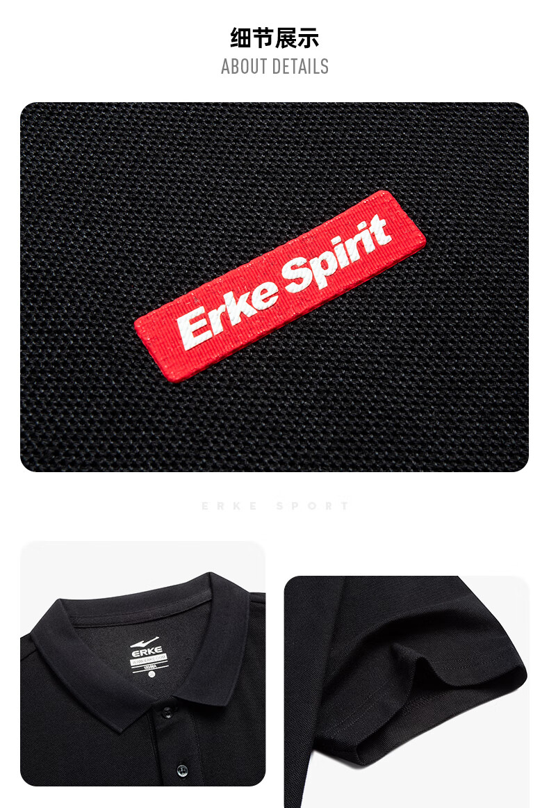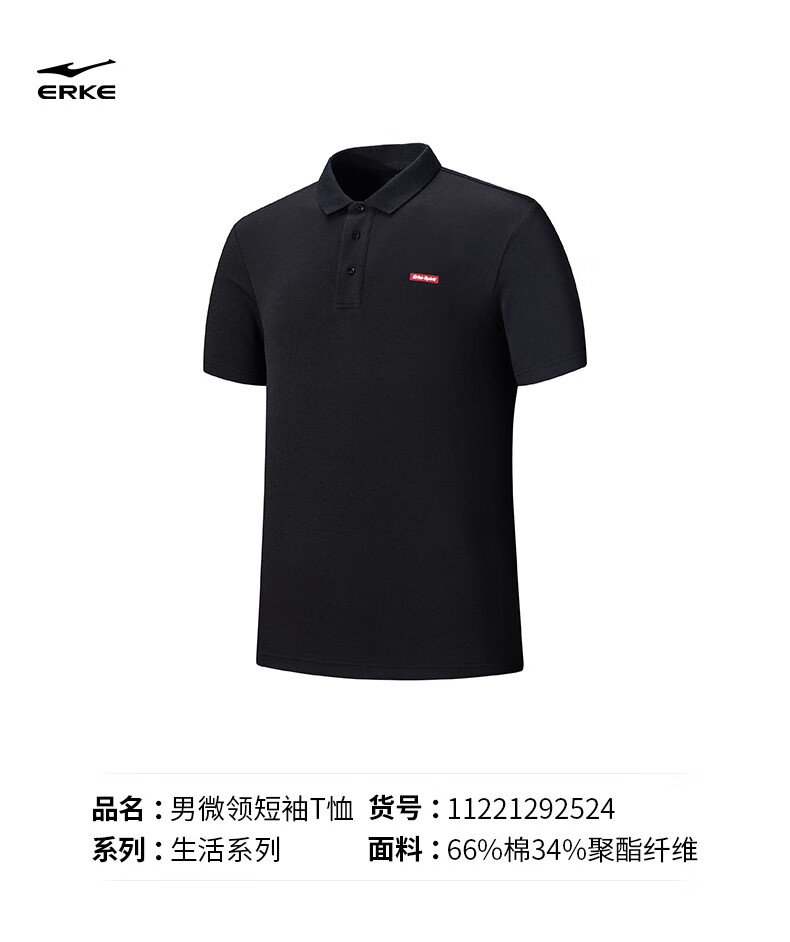 鸿星尔克polo衫男士短袖T恤翻领套头衫男装舒适运动短T 11221292524 正黑 2XL